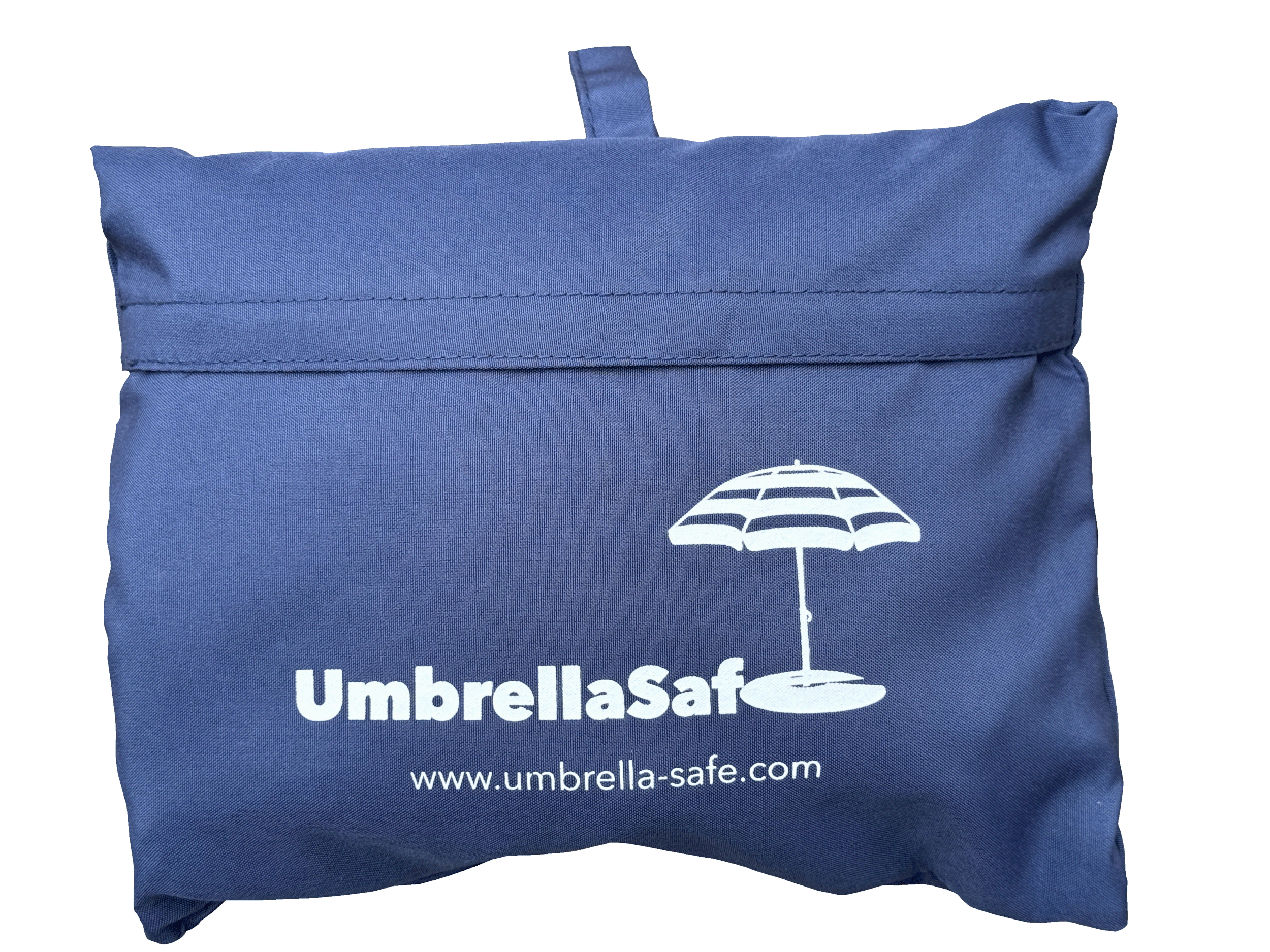 Warning - While UmbrellasSafe provides additional security to prevent a beach umbrella from becoming a projectile, there is still a risk of injury.